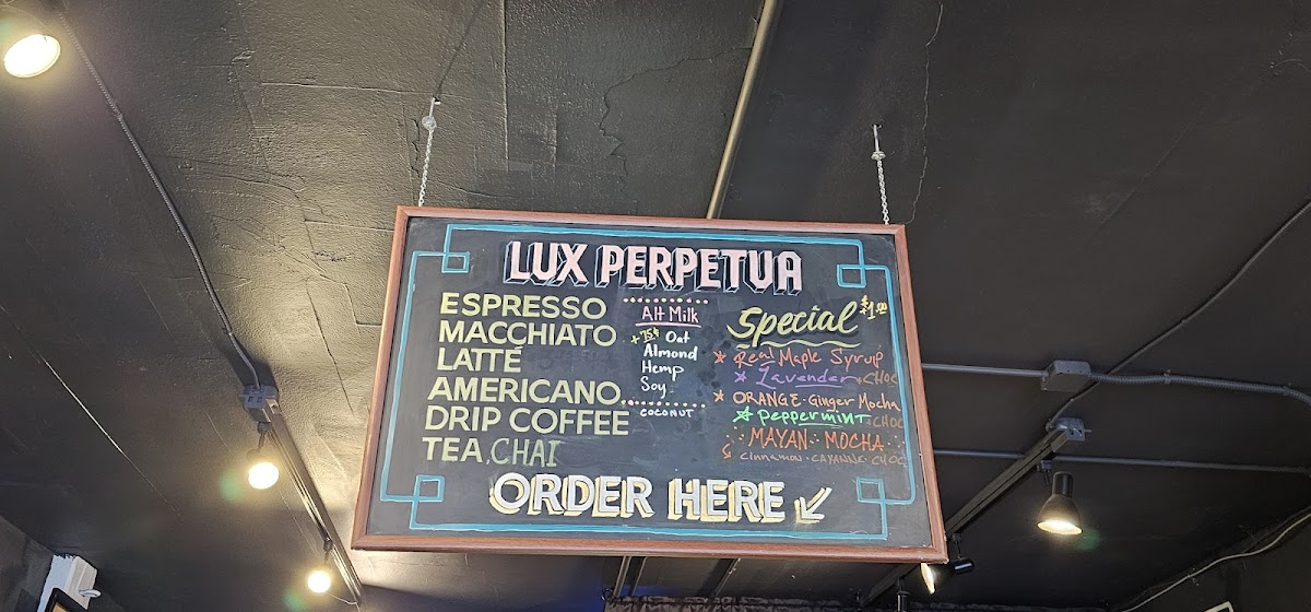 The menu at Lux Perpetua Coffee offers a straightforward yet thoughtfully curated selection designed to complement the relaxed, welcoming atmosphere of this local spot. You’ll find a range of comforting drinks alongside simple, satisfying bites that fit naturally into a slow morning, a casual afternoon break, or a quiet moment of remote work.